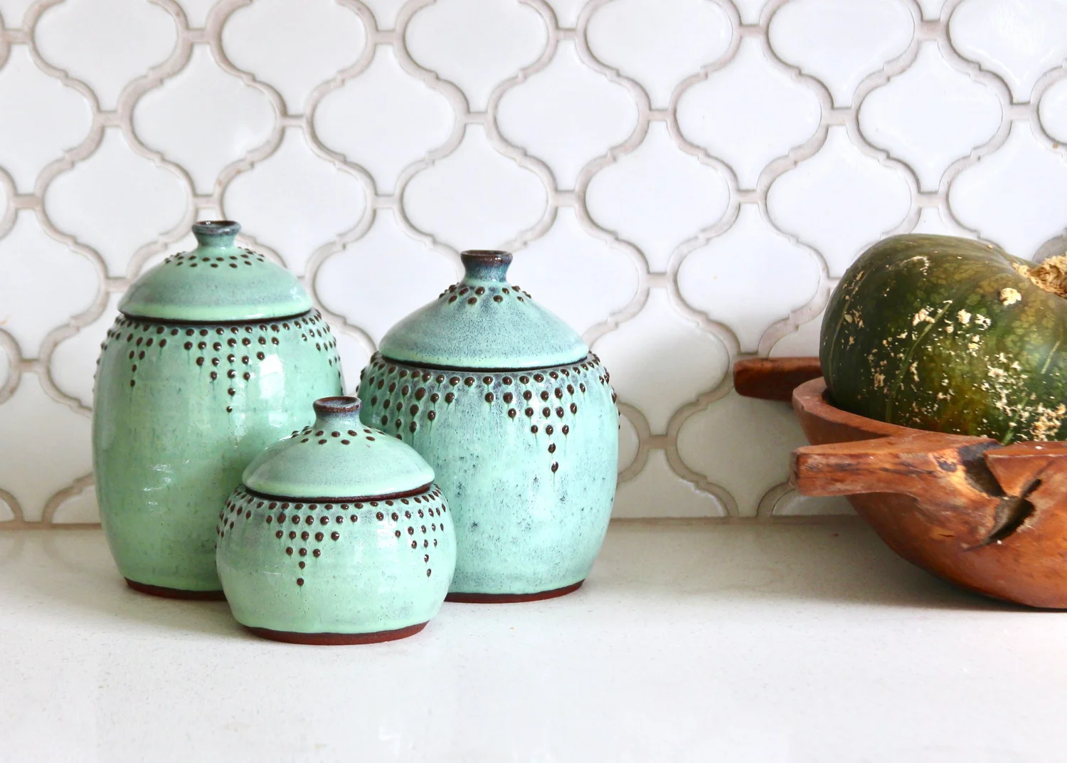 Lidded Jar Set In Aqua Mist 10 Oz 20oz Or 30oz Back Bay Pottery